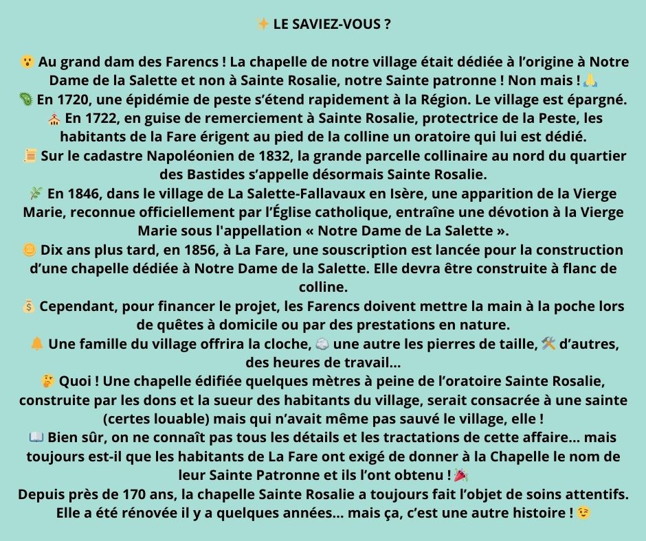 saviez-vous Admin 25 août 2025 0 Commentaires Le saviez-vous ? Quatrième édition Au XIXème siècle construire une chapelle demandait la force des tailleurs de pierre , des charpentiers et même des paysans . Un vrai défi collectif , qui nous rappelle combien solidarité et patrimoine vont de pair ! Découvrez la véritable histoire de notre belle chapelle !